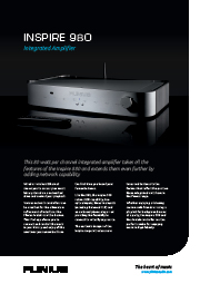 The 80 watt per channel Inspire 980 has all the versatility of the Inspire 880 that allows you to directly connect up almost any source from a CD player, your personal computer, your AV source or turntable. The Inspire 980 adds the further feature of networking capability via wired or wireless Ethernet and this allows you to directly access your music library stored on a networked drive.