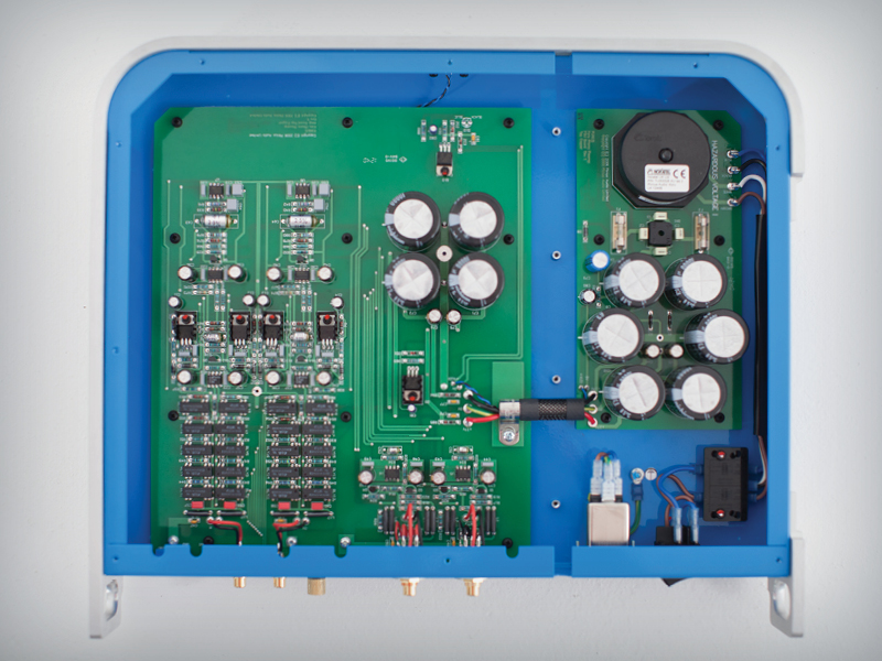 The power supply boasts a virtual battery approach with over 100,000 micro Farads of capacitance and very sophisticated 2 stage regulation. This ensures the lowest impedance and consequently extreme accuracy of power delivery to the amplification stages.